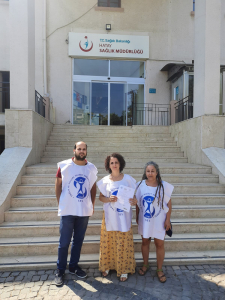 SES Hatay Şube Yönetim Kurulu üyeleri Nilgün Aşkar, Doğan Durkal ve Zeynep Bolat, ücretler üzerinden bankaların elde ettiği kardan daha fazla pay almaları gerektiğini belirten dilekçeyi Hatay İl Sağlık Müdürlüğü’ne teslim etti.