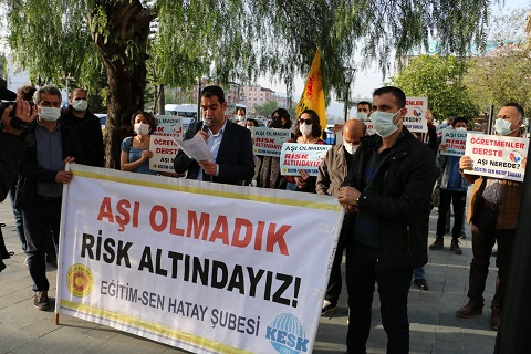 Nisan ayına gelindiğinde, sadece köylerde, seyrek nüfuslu yerlerde çalışan ve 60 yaş üzeri öğretmenlerimiz dışında eğitim emekçilerinin çok büyük bölümüne halen aşı yapılmamıştır. Eğitim emekçilerinin, öğrencilerin ve velilerin şehir içindeki hareketliliği öngörülerek kararlar alınması gerekirken, alınan kararlar ve uygulamalar virüsün yayılımını daha da arttırmıştır. Toplu ve kontrolsüz açılmanın ardından, ortaokul ve liselerde yüz yüze eğitime başlanması ve zorunlu yüz yüze sınavlar sonrası pek çok öğrenci ve öğretmen Covid-19 virüsüne yakalanmıştır. 2 Mart sonrasında vaka, ağır hasta ve ölüm sayılarında yaşanan hızlı artış, eğitim emekçilerine aşıda öncelik tanınması yönündeki acil talebimizin ne kadar önemli ve haklı olduğunu ortaya koymuştur. Gerekli önlemler alınmadan, böylesine büyük bir risk altında görev yapmaya zorlanmamızın, sağlıklı yaşam hakkımıza müdahale anlamına geldiği açıktır. Bizlerin, aile bireylerimizin, öğrencilerimizin ve öğrenci velilerimizin hastalanması halinde sorumluluk yetkililerin olacaktır. İlimiz 27 Mart- 2 Nisan tarihleri arasında 100 binde 132.95 vaka sayısı ile çok yüksek riskli iller arasına girerek ne yazık ki kırmızıya boyanmıştır. İlimizde dün Kırıkhan’da, geçen aylarda Defne ve İskenderun ilçelerinde olmak üzere ülke genelinde ne yazık ki birçok meslektaşımızı kaybettik.