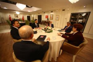 CHP Genel Başkanı Kemal Kılıçdaroğlu, İyi Parti Genel Başkanı Merak Akşener, Saadet Partisi Genel Başkanı Temel Karamollaoğlu, DEVA Partisi Genel Başkanı Ali Babacan ve Gelecek Partisi Genel Başkanı Ahmet Davutoğlu’nun ağırlandığı iftar yemeği; eski Cumhurbaşkanı Turgut Özal’ın ANAP Genel Başkanı olarak son kullandığı makam odasında yenildi.