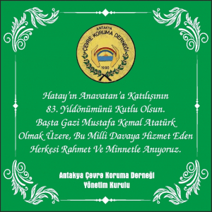 Antakya Çevre Koruma Derneği, Hatay’ın anavatana katılışının yıldönümü dolayısıyla bir kutlama mesajı yayınladı.