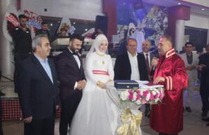 Nikâh töreninin ardından genç çifte bir ömür boyu mutluluk diledi.