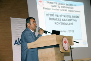 Hatay İl Tarım ve Orman Müdürlüğü Bitki Sağlığı Şubesi’nde görevli Ziraat Mühendisi Hacı Erbay, Hatay Gıda Kontrol Laboratuvar Müdürü Behcet Budak ve Hatay Zirai Karantina Müdür Yardımcısı Cemil Bengin’inde sunum yaptıkları toplantı, soru cevap bölümü ile sona erdi.