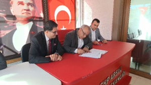 Ali Abbas Alay ve kalabalık sevenleri ve dostlarıyla Cumhuriyet Halk Partisi Arsuz İlçe Başkanlığına gelerek burada aday adaylığı müracaatında bulundu.