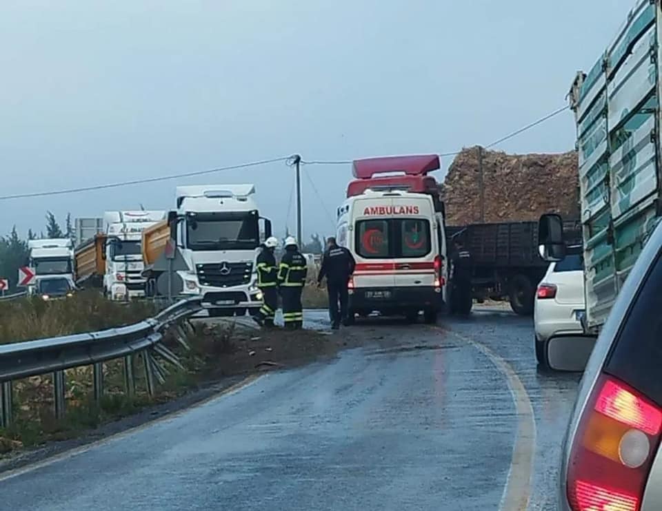 Altınözü’nde yağmurun ardından kayganlaşan zemin ve sisli hava nedeniyle makas atan TIR’ın sürücüsü yaralandı.