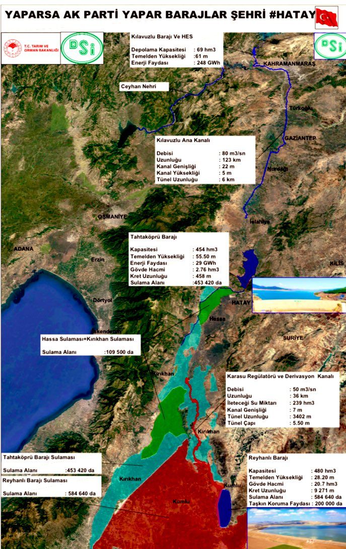Hatay vilayetinin GAP’ı olacak bu proje entegre bir sulama sistemi getiriyor. Su dev kanallarla K. Maraş, Gaziantep, Kilis illerinden geçerek Hatay’a geliyor..