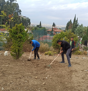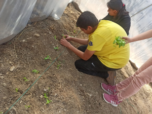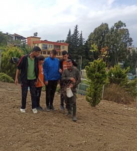 Okul Müdürü Murat Sakman, Defne Belediyesi, TEOFARM çiftliği ve okuldan oluşan heyetle okulun bir bölümüne tohum ekti.