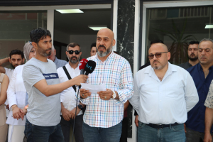Hatay Medikalciler Derneği önünde gerçekleştirilen basın açıklaması Hatay Medikalciler Derneği (HAT-MED) Başkanı Hasan Ateş tarafından yapıldı.
