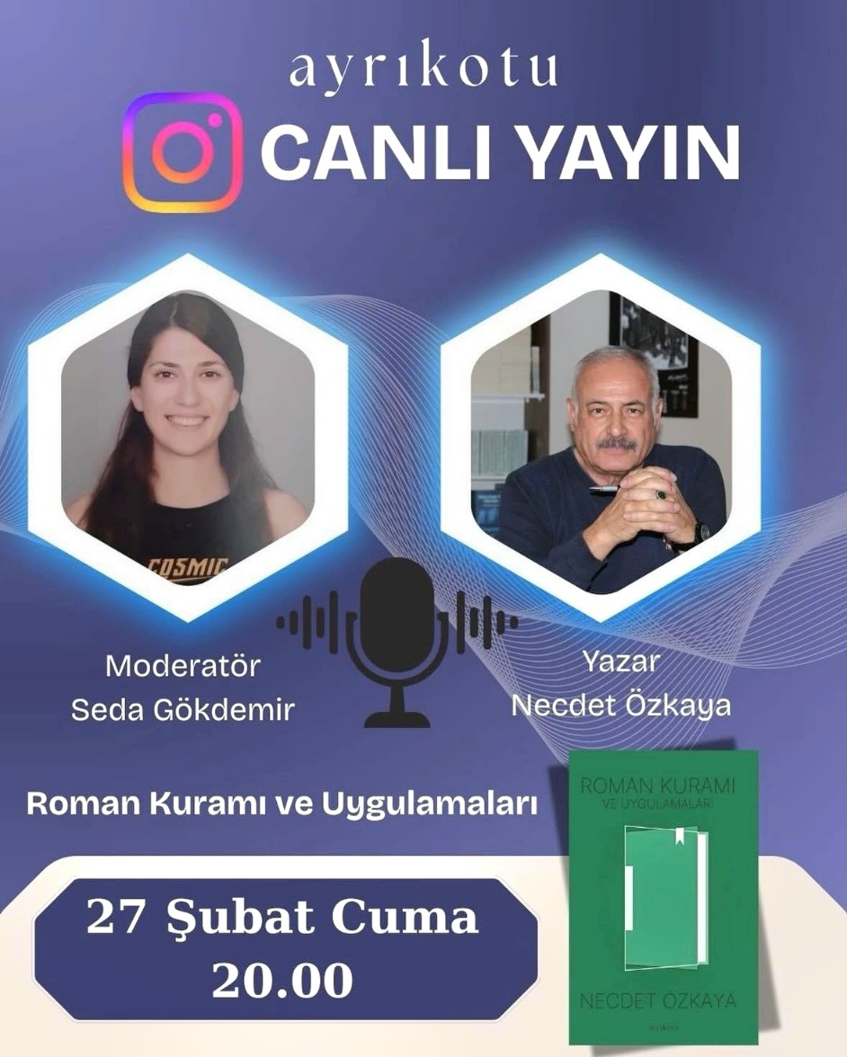 Edebiyat dünyasında kuramsal çerçevesi ve uygulamaya dönük önerileriyle dikkat çeken “Roman Kuramı ve Uygulamaları” adlı yeni kitap, bu akşam saat 20.00’de Instagram üzerinden gerçekleştirilecek canlı yayında ele alınacak. Programda, kitabın yazarı Necdet Özkaya, moderatör Seda Gökdemir ile roman sanatına dair kapsamlı bir söyleşi gerçekleştirecek.