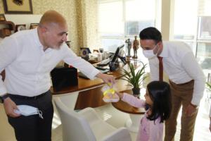 Başhekim Dr. Ömer Suha Caymaz, bugünün çocukların günü olduğunu belirterek yaptığı açıklamada, “Öncelikle Gazi Mustafa Kemal Atatürk’e ve silah arkadaşlarına minnet duygularımı ifade ediyorum. Dünya çocuklarıyla birlikte; neşe dolu gülüşlerinizin gökyüzünü çınlattığı, hep mutlu olduğunuz, barış içinde büyüyeceğiniz daha nice güzel bayramlar diliyorum” dedi. Başhekim Dr. Ömer Suha Caymaz ardından minik Ada’ya günün anlamına özel hediye sundu.