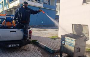 ÇÖP KONTEYNERLERİ YERİNDE DEZENFEKTE EDİLİYOR