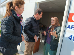 Samandağ Belediye Başkanı Av. Refik Eryılmaz, ilçe sınırları içerisinde bulunan konteyner kentleri ziyaret ederek, vatandaşların dertlerini ve sıkıntılarını dinlemeye devam ediyor.