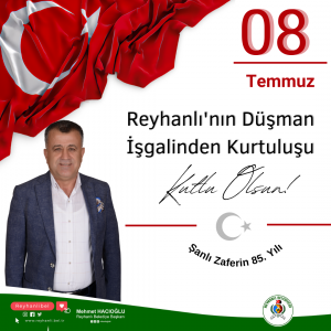 Reyhanlı Belediye Başkanı Mehmet Hacıoğlu, Reyhanlı’nın düşman işgalinden kurtuluşunun 85. yıl dönümü münasebetiyle kutlama mesaj yayınladı.