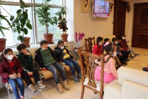 Minik öğrencilerin ilçeyle ilgili düşüncelerini de alan Hacıoğlu, miniklerin verdiği cevapları hayret ve merakla dinledi. Başkan Hacıoğlu, ziyaretçilerine teşekkür etti.