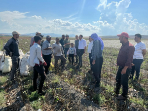 Cumhuriyet Halk Partisi Antakya İlçe Başkanı Ümit Kutlu ve beraberindeki heyet pamuk hasat eden çiftçileri tarlada dinledi.