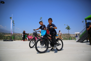 Açılış konuşmalarının ardından ailelere anahtarları teslim edildi ve burada yaşayacak ailelerin çocuklarına bisiklet hediye edildi.