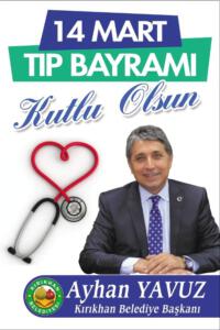 Kırıkhan Belediye Başkanı Ayhan Yavuz 14 Mart Tıp Bayramı dolayısıyla kutlama mesajı yayınladı.