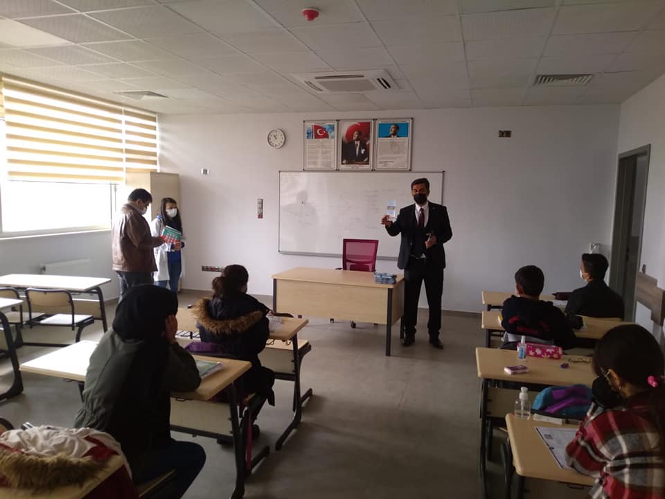 1 – 7 Mart Deprem haftasını fırsat bilerek pandemi sürecinde geçici bir süreliğine ara verdiğimiz ilköğretim, Ortaöğretim ve Lise okullarımızda deprem öncesi, deprem sırasında ve deprem sonrasında yapılması gerekenlerle ilgili yine pandemi kuralları çerçevesinde bilgilendirme çalışmaları yaptırdık. Öğrencilerimiz ayrıca bilgilendirme broşürleri dağıtıldı. Depremle bilgilendirme eğitimlerimiz ve broşür dağıtım çalışmalarımız devam edecektir.” Dedi.