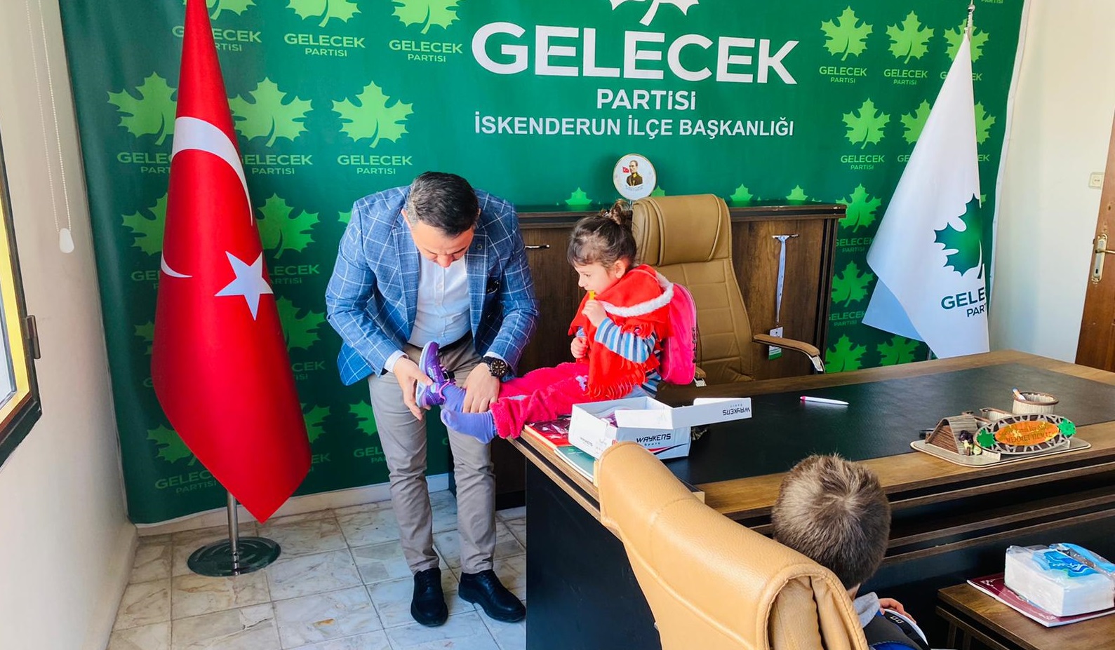 Gelecek Partisi İskenderun İlçe Başkanı Mehmet Yılmaz, yaklaşan Ramazan bayramı öncesinde ihtiyaç sahibi vatandaşların çocuklarını ayakkabı hediye ederek sevindirdi.