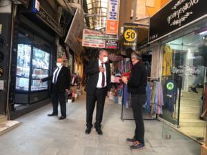 Antakya Belediye Başkanı İzzettin Yılmaz, Ulus Meydanı Pazar Caddesi’nde hizmet esnafla bir araya geldi.