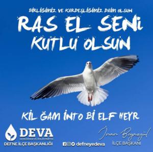 DEVA Partisi Defne İlçe Başkanı İnan Beyazgül , Arap Alevi vatandaşların kutladığı Ras-el Seni bayramı dolayısıyla bir kutlama mesajı yayınladı.