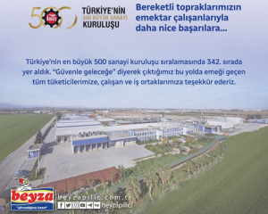 Beyza Piliç firması tarafından elde edilen başarıya yönelik yapılan açıklamada; “Bereketli topraklarımızın emektar çalışanlarıyla daha nice başarılara. Türkiye’nin en büyük 500 sanayi kuruluşu sıralamasında 342. sırada yer aldık. Güvenle geleceğe diyerek çıktığımız bu yolda emeği geçen tüm tüketicilerimize, çalışan ve iş ortaklarımıza teşekkür ederiz.” ifadelerine yer verildi.