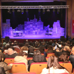 Oyunun sonunda izleyiciler Çehov Kabare ekibini ayakta alkışlarken HBB yetkilileri oyunculara çiçek takdim etti.