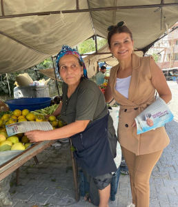 Akpınar ve yönetim kurulu üyesi kadınlar pazarda özellikle kadınları ilgilendiren ve bir türlü hayata geçirilmeyen Aile Destekleri Sigortasının anlatımını yaparak CHP’nin iktidara gelmesiyle yürürlüğe sokulacağı vurgulandı.