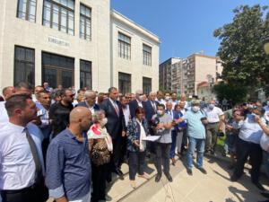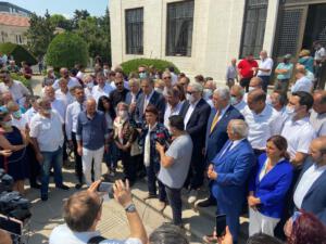 Bugün burada şehir dışı programı nedeniyle aramızda olamayan Hatay İl Başkanımız Sayın Ramiz Parlar’ın öncülüğünde vefakar örgütümüz, milletvekillerimiz, il-ilçe başkan ve yöneticilerimiz, belediye başkanlarımız ve Hataylı hemşehrilerimizle “tek vücut, tek ses” gerekli cevabı veriyoruz.