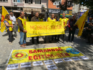 Söz verdiğiniz ve yerine getirmek zorunda olduğunuz koşulları sağlamadan ve özellikle rızaya dayalı olmadan hiçbir öğretmenimizi çağırmayın, korkutmayın, işiyle, ekmeğiyle, ek dersiyle ve yasaları, genelgeleri vb. kafanıza göre yorumlayarak ve özellikle eğitim emekçisinin aleyhine olacak şekilde, sanki meslektaşınız değilmiş, okulların sahibi sizmiş gibi tehdit etmeyin, taciz etmeyin. Yani suç işlemeyin. İlgililere ve Halkımıza saygılarımızla” ifadelerini kulandılar. Haber: Levent Aşkar