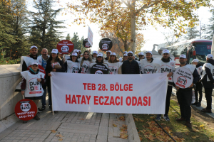 Aralarında Hatay Eczacılar Odası’nın da olduğu çok sayıda ilden eczacı Ankara’da bir araya gelerek mesleklerine sahip çıkmak için seslerini yükseltti.