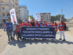 Asrın değil ,asırların en büyük felaketi olan 6 Şubat depremlerinin üzerinden yaklaşık 7,5 ay geçmesine rağmen depremden en fazla etkilenen Hatay başta olmak üzere bölgedeki genel duruma ve eğitimdeki sorunlara dikkat çekmek için depremden etkilenen 11 il Eğitim-İş üyeleri Hatay’daydı.