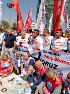 Başkan Günal’ın katıldığı protesto etkinliğinde yayınlanan açıklamada, “Konfederasyonumuz Birleşik Kamu-İş ve bağlı sendikalarımızla memur ve memur emeklerinin maaşları için belirlenen zam oranına Ankara’da düzenlediğimiz kitlesel basın açıklamasıyla tepki gösterdik.