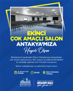 “Belediyemiz tarafından Ekinci Mahallemize kazandırılan çok amaçlı salonumuzu, tüm sosyal ve kültürel etkinliklere ev sahipliği yapması için halkımızın hizmetine sunuyoruz. Bu eser, yalnızca Ekinci Mahallemizin değil, tüm Antakya’nın kullanımına açık olacak. Mahalle sakinlerimize ve şehrimize hayırlı uğurlu olmasını diliyorum.”