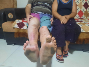 Gerek sağlık gerekse maddi durumunun kötüleşmeye başlayınca eşinin kendisini terk ettiğini söyleyen Mustafa Damar “ Eşim beni çocuğumla ortada bırakıp gitti. Şeker hastalığım nedeni ile ayak parmaklarım kesildi. Bu hastalıktan dolayı bir gözüm görmüyor. Diğer ayağım için tedavi görüyorum. Tedavi sonuç vermez ise ayağımda kesilecek. Sağ olsun hayırsever işadamı Ali Bey beni ziyaret etti ve gerekirse ameliyat masraflarımı karşılayacağını her zaman destek olacağını söyledi. Allah kendisinden razı olsun” dedi.