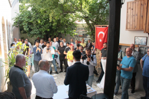 Hatay Gazeteciler Cemiyeti’nde düzenlenen törene Hatay Gazeteciler Cemiyeti Başkanı Abdullah Temizyürek, Saadet Partisi GİK Üyesi ve Beyzade FM&TV sahibi Doç. Dr. Necmettin Çalışkan, ATSO Başkanı Hikmet Çinçin, SGK İl Müdürü Hamit Bal, Memur-Sen Hatay İl Başkanı İsmail Bayrakdar, HASİAD Başkanı Murat Hayzaran, HASİAD geçmiş dönem başkanı Gökhan Alkan, Hatay Ticaret İl Müdürü Halit İmrek, Kızılay Hatay Şube Başkanı Kudret Özbakış, ATSO Genel Sekreteri Erhan Yağız ve basın mensupları katıldı.
