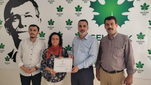 Gelecek Partisi Hatay İl Başkanı Can Cankesen, Antakya ilçe başkanlığı mazbatasını dürüstlüğüyle ve saygınlığıyla bilinen kadın girişimci Aysel Horoz’a takdim etti.