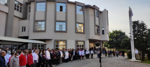 Hastane yöneticileri, doktorları ve sağlık personelinin hazır bulunduğu törende; saat 9’u 5 geçe, siren sesleri eşliğinde iki dakikalık saygı duruşunda bulunuldu ve akabinde İstiklal Marşı okundu.