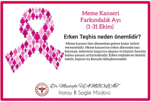 Hatay İl Sağlık Müdürü Dr. Mustafa Hambolat, 1-31 Ekim Meme Kanseri Farkındalık Ayı dolayısıyla bir açıklama yayınladı.