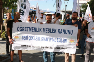 Tüm Öğretmenler Birliği Sendikası Genel Örgütlenme Sekreteri Hizam Hasırcı, Öğretmenlik meslek kanununun iptali için bir basın açıklaması yaptı.