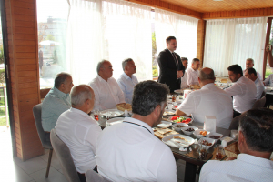 Hassa Belediye Başkanı Mehmet Karataş, ilçede görev yapan mahalle muhtarlarıyla istişare toplantısında bir araya geldi.