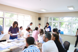 İlçe Seçim Müdürü Zübeyir Atan ve İlçe Seçim Kurulu Başkanı Gökhan Turhan gözetiminde gerçekleştirilen