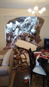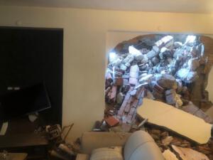 İş makinelerinin de çalıştığı sırada, bitişikte bulunan apartmanın ilk iki katındaki 2 dairenin salon duvarı yıkıldı. Olay sırasında dairelerin salonunda kimsenin bulunmadığı öğrenildi.