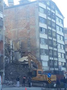 Antakya’ya bağlı Kışlasaray Mahallesi Harbiye Caddesi üzerinde bitişik nizam 3 apartmanın ortasındaki binanın kontrolsüz yıkımı faciaya yol açtı.