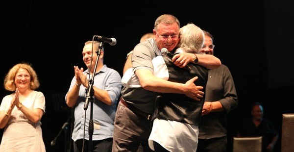 Savaş ve Akbayram’ın kucaklaşması izleyenlerden büyük alkış aldı. Savaş sanatçılarla birlikte barışın simgesi beyaz güvercinleri havaya, özgürlüğüne bıraktı.