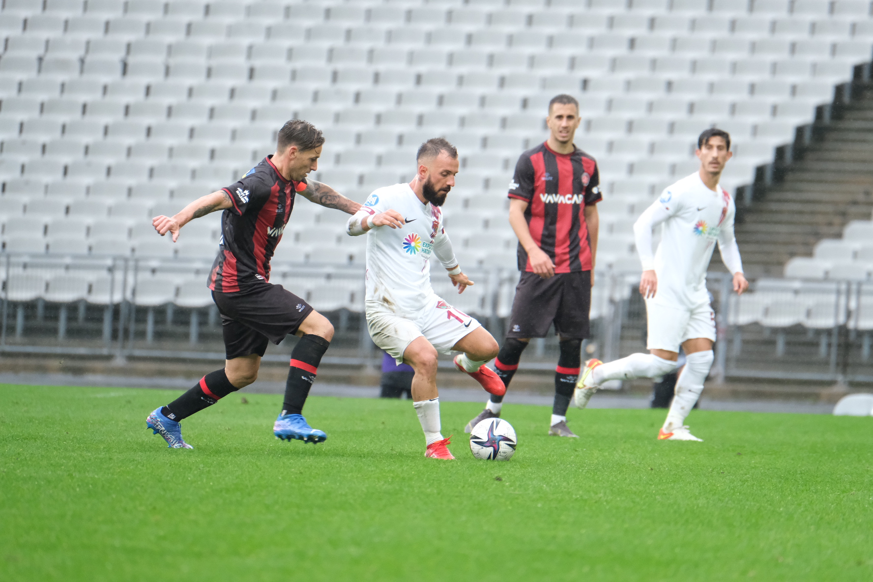 Arka arkaya galibiyetlerle ligde 2. sıraya kadar yükselen Hatayspor’a Fatih Karagümrük dur dedi. Olimpiyat stadyumu’nda yoğun yağış altında oynanan karşılaşmada Hatayspor Fatih Karagümrük ile 1-1 berabere kaldı.
