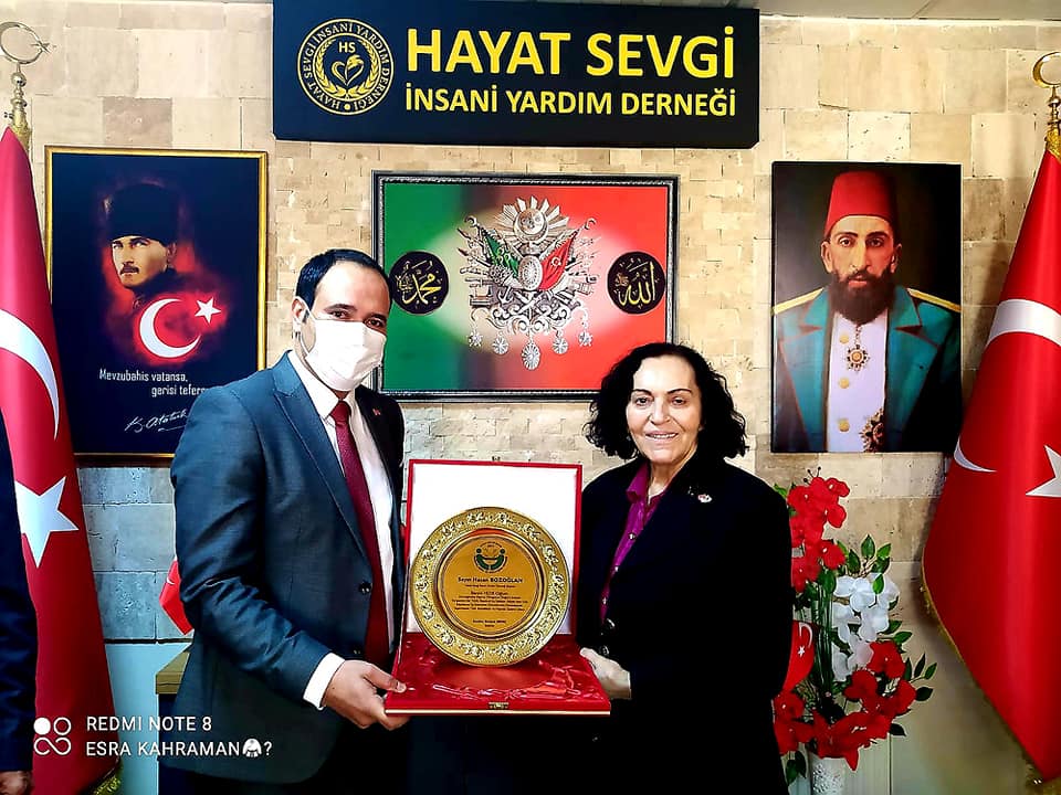 Hayat Sevgi İnsani Yardım Derneği’ne başarılı çalışmalarından dolayı plaket takdim edildi. Başkan Bozoğlan yaptığı açıklamada, “Hatay Büyükşehir Yardımlaşma ve Dayanışma Derneği Yönetim Kurulu Başkanı Saadet Genç ve yönetim kurulu bize bir plaket takdim ettiler. Kendilerine teşekkür ederiz. İçinden geçmiş olduğumuz bu zor günlerde el birliği ile milletimizin yanındayız yüce Allah devletimize ve milletimize zeval vermesin” dedi. Başkan Bozoğlan, tüm destekçilerine teşekkür ederek, yardım faaliyetlerinin devam edeceğini belirtti.