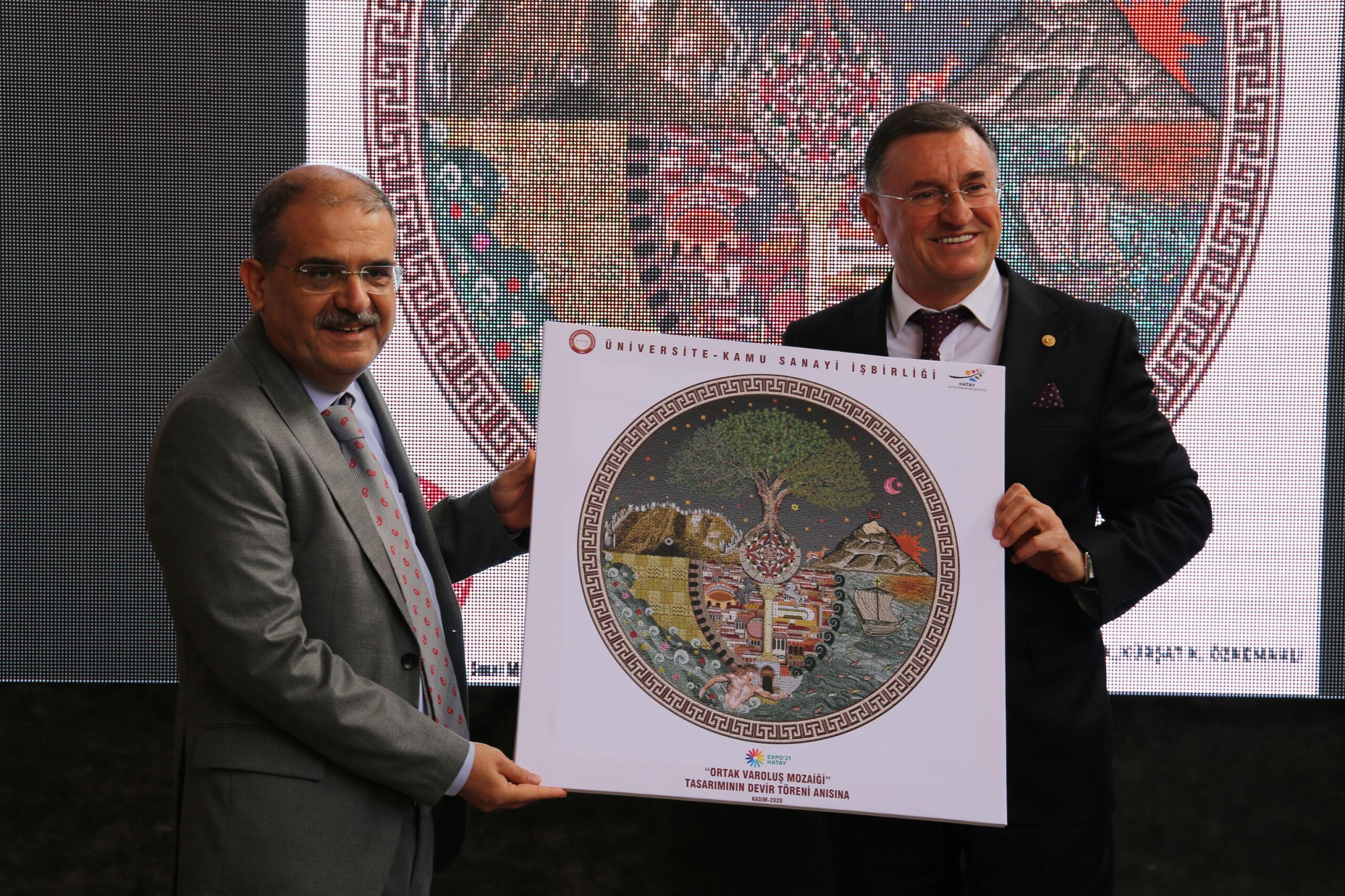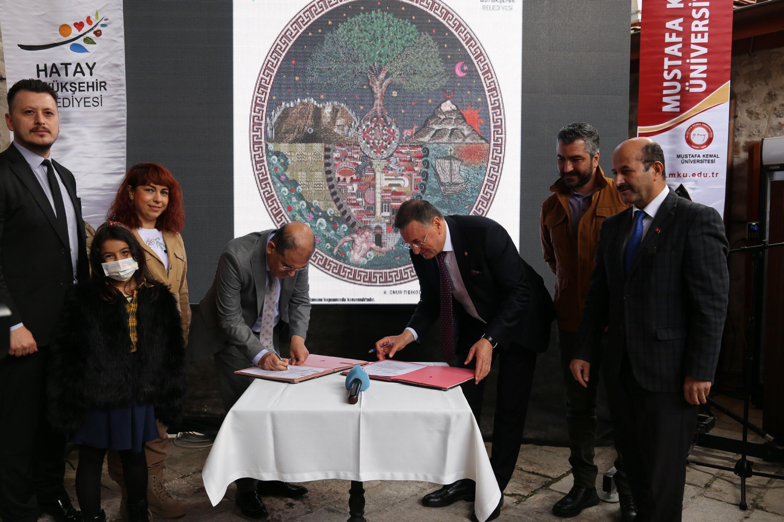 Hatay Büyükşehir Belediyesi(HBB) ile Hatay Mustafa Kemal Üniversitesi(MKÜ) arasında değerli ve anlamlı bir protokol imzalandı. EXPO 2021 Hatay projesi kapsamında yer alacak ve dünyanın tek parça taban mozaiği olma özelliğini taşıyacak Ortak Varoluş mozaiğinin HBB’ye devri için imzalar atıldı.