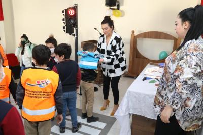 Çocuklar, aktif katılım sağladıkları bu eğitimde hem çok eğlendi hem de trafik kurallarını öğrenmenin mutluluğunu yaşadı.