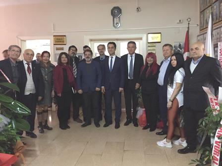 Hatay gazeteciler cemiyeti Başkan Ahmet Yetişen, yöneticiler ve üyeleriyle birlikte yeni seçilen belediye başkanlarına hayırlı olsun ziyaretlerinde bulundu. İlk olarak Erzin belediye başkanı Ökkeş Elmasoğlu’nu ziyaret eden heyeti kapıda karşılayan Elmasoğlu güler yüzü ve cana yakın tavırlarıyla gazetecilerin gönlüne girmeyi başardı, aynı zamanda Hatay ilinin en genç belediye başkanı olan Elmasoğlu ziyaretten duyduğu memnuniyeti dile getirdi.
