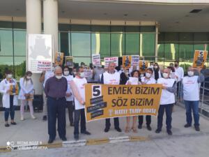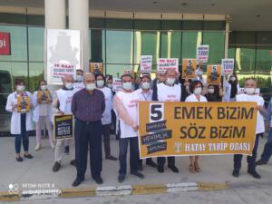 Hatay Tabip Odası Yönetim Kurulu, Hatay Eğitim ve Araştırma Hastanesi önünde bir basın açıklaması yayınladı.